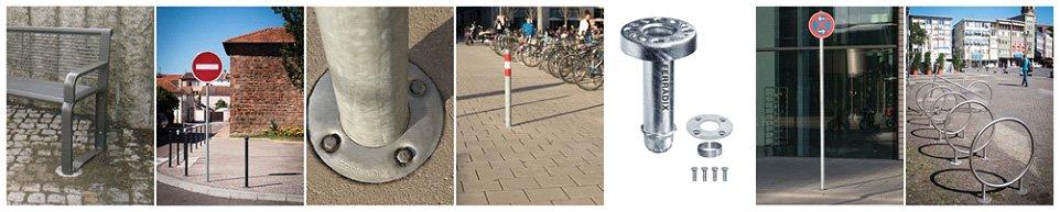 The installation anchor is used in urban construction sites, road and street maintenance units, and other institutions all over Europe. Thanks to advanced technology, the anchors are perfectly suited for fixing urban furniture, traffic signs, reflective posts, trash bins, tree trunk protectors, benches, fences, railings, bicycle racks, billboards, football goals, and many other structures. So there are plenty of possibilities!