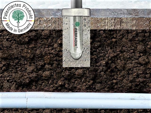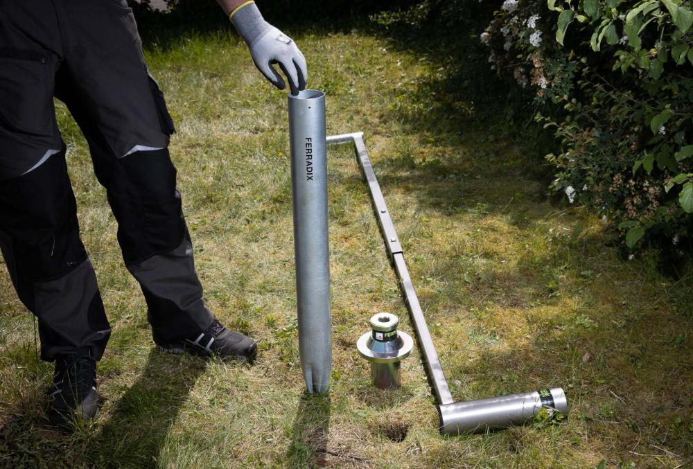 The City installation anchor is designed for use especially in urban environments where concrete is needed. The pole's short standard length of 30 cm and rounded tip prevent damage to cables and pipes. Thanks to Ferradix City's innovative technology, up to 80% of concrete can be saved compared to traditional techniques. The City installation anchor creates a neat urban appearance.